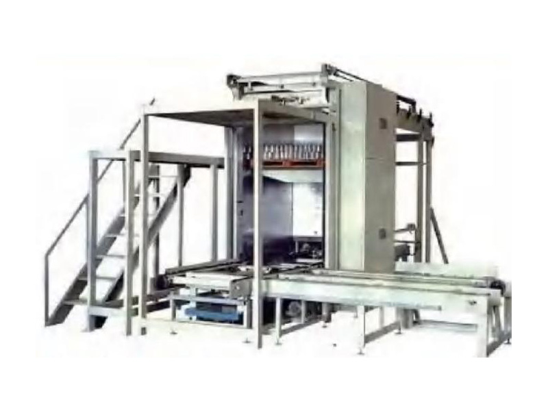磁吸式卸垛机系列由升降托盘和输送设备组合两部分组成。主要主要应用于铁质制罐公司的自动卸罐, 也可以用于其它铁质物品的卸垛。输送机将罐包输送到卸垛机提升井内,磁吸机构将每层罐子送至网带上, 网带将罐子输送至下降机处,罐包卸垛完成后,提升架降至最底位置,空托盘由双层链条输送下层运送出去 等待叉车叉走。该设备降低人工成本,提高生产效率。